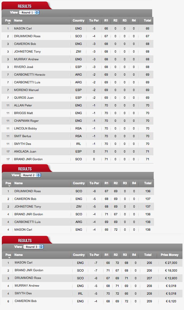 On the final day of the tournament, both Carl Mason and Brand Jrn finished at seven under par 206 after respective closing rounds of 68. Mason holed from a 15 feet put on the final green to book his place in the play-off. The previous day’s leader, Ross Drummond could not repeat in the final group, although the 52 year old Scot did take a third place on his own with a six under par 207.